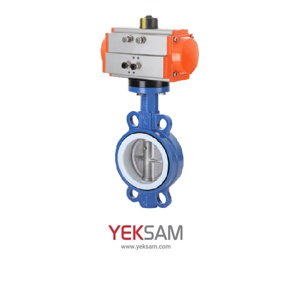 شیر پروانه ای 3 اینچ لاینر تفلون PTFE با عملگر پنوماتیک NOGIX ACTUATOR به همراه شیر برقی نامور ۲۲۰ ولت