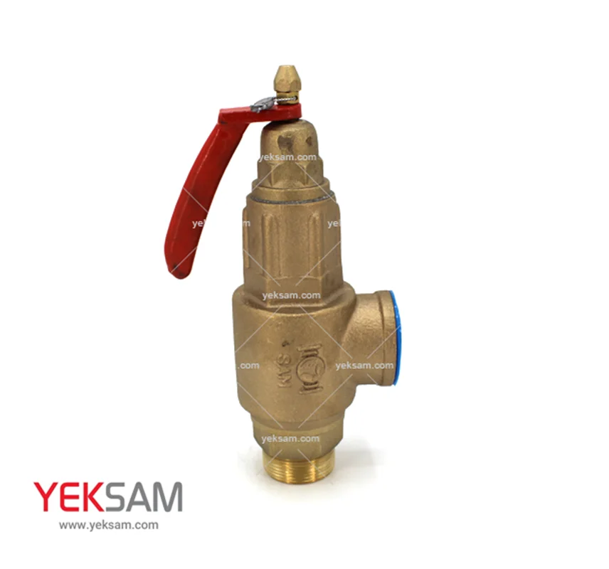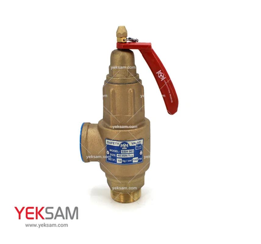 سوپاپ اطمینان برنجی سایز 1/2-1 اینچ فشار 10 بار اهرمی دنده ای (رزوه ای) ، بدنه برنجی سیال : آب ُ گاز ُ هوای فشرده SAFETY VALVE SAM 1-1/2" 10 BAR WATER /GAS/AIR