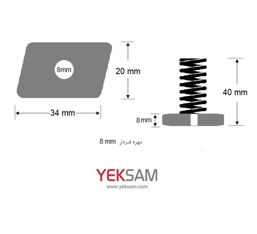 مهره فنردار گالوانیزه گرم داکرومات سایز ابعاد 34*20 میلیمتر ضخامت 8 میلیمتر سوراخ M۸ کاسپین پایپ